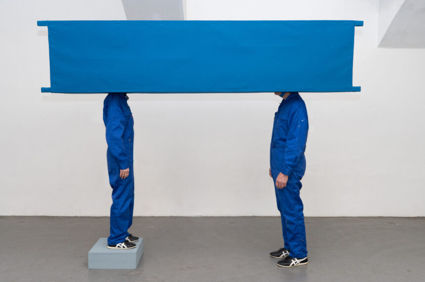 wood, fabric geta straps, jesmonite, wooden stool, acrylic sheet.